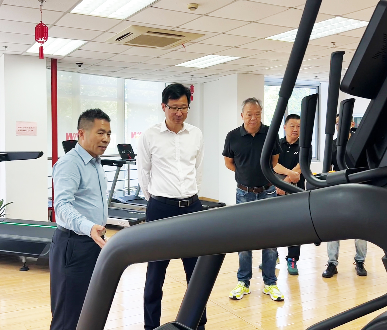 在公司董事长刘严雄和几位高管热情的陪同下,领导一行先后参观了永利展厅以及智慧健身房,详细了解了我司在商用健身器材、智慧健身解决方案等领域的产品创新与技术实力。公司董事长刘严雄围绕企业发展历程、主营产品特色、行业布局以及未来战略规划进行了详细的介绍。